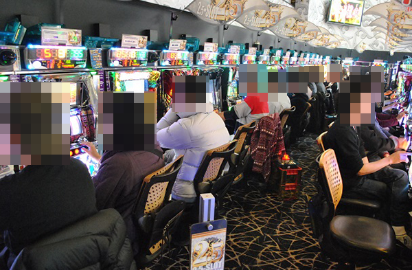 朝イチは20円パチスロの「沖ドキ!-30」や「バジリスク~甲賀忍法帖~絆」などの席がすぐに埋まっていき、イキイキとした表情で遊技をはじめていた。