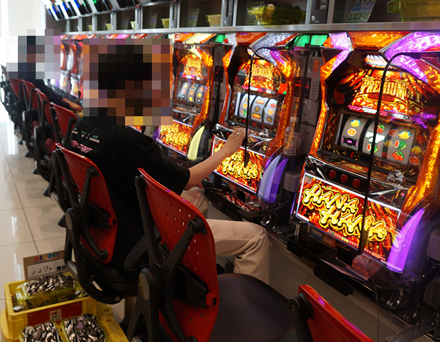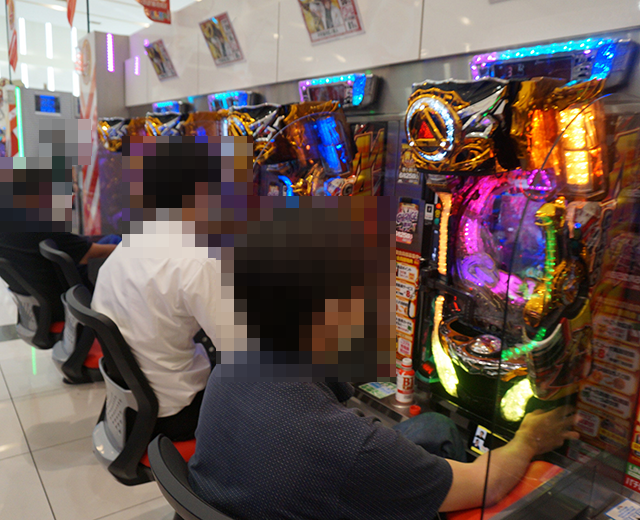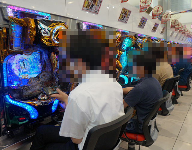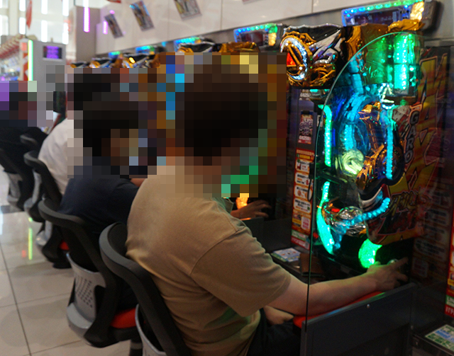 さまざまな機種が支持されているパチンコで、ひときわ目立つ場所となっていた。