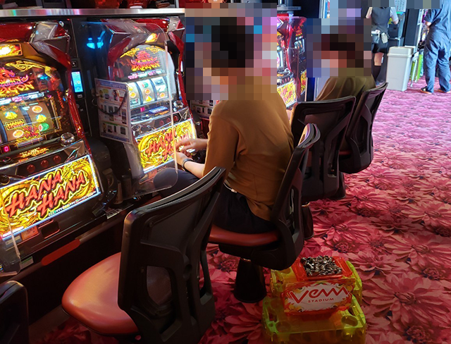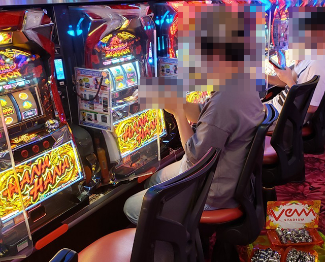パチスロコーナーをまわっていくと、あちこちで活躍をしている姿を目撃。