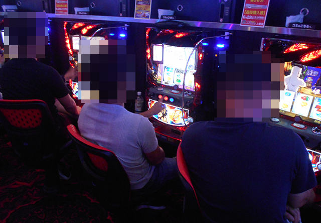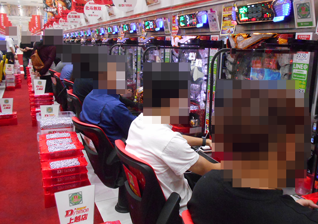 機種を問わずに、さまざまな機種が楽しまれていた「スーパーD'ステーション上越店」。うれしそうに遊技をおこなう姿からは、満足度の高さも伝わってきた。