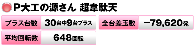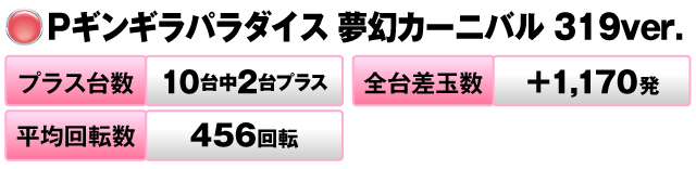 10台中プラスは2台だったが全台差玉数は+1,170発を記録した。