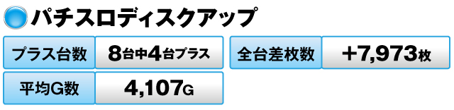 8台中4台がプラスで全台差枚数は+7,973枚を記録した。