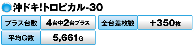 また、『新ハナビ』と『沖ドキ!トロピカル-30』も、出玉こそ目立たなかったが、優秀な挙動を見せていた。