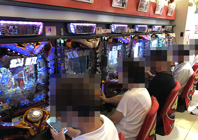 プレイヤーが披露するパフォーマンスによって、にぎやかな状況となっていた「ぱちんこCR真・北斗無双」!