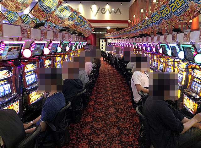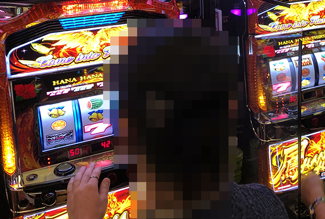 ホールで最多の設置台数を誇る「ハナハナ鳳凰-30」には、+7,430ptを記録する台があった。