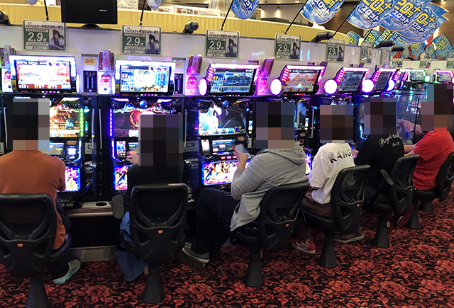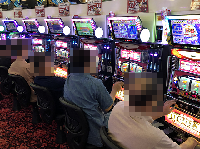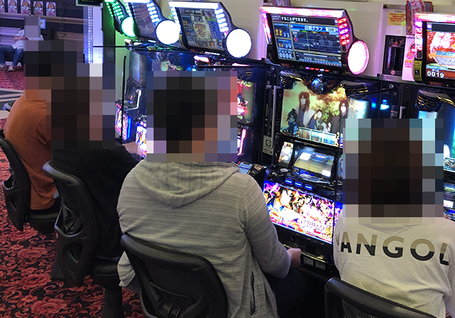 笑顔のプレイヤーが並び、明るい雰囲気に包まれていたのは「SLOTバジリスク~甲賀忍法帖~絆2」!