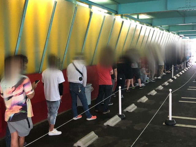 湿気たっぷりの中、開店前には65名が店舗前に集結。