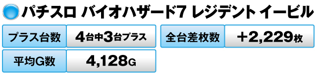 最後に注目したいのが『ゴーゴージャグラー』と『パチスロ バイオハザード7 レジデント イービル』。両者共に安定の結果を残した。