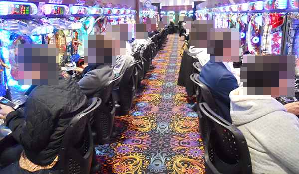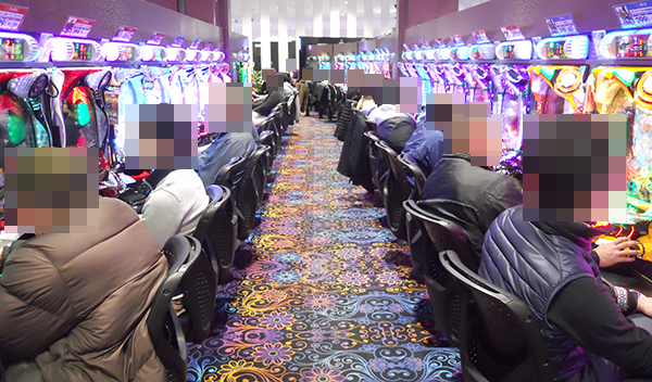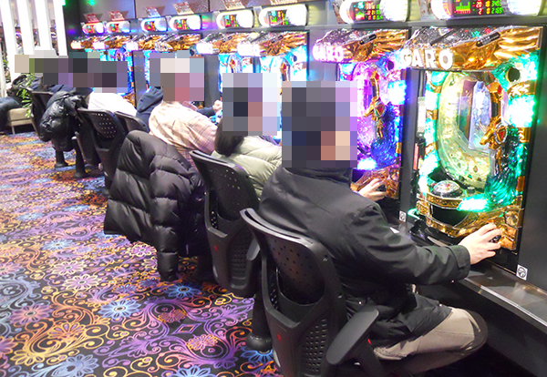 4円パチンコでは、海物語シリーズや「CR牙狼 魔戒ノ花」などが人気となっており、笑顔をみせる多数のプレイヤーを確認。