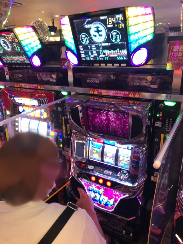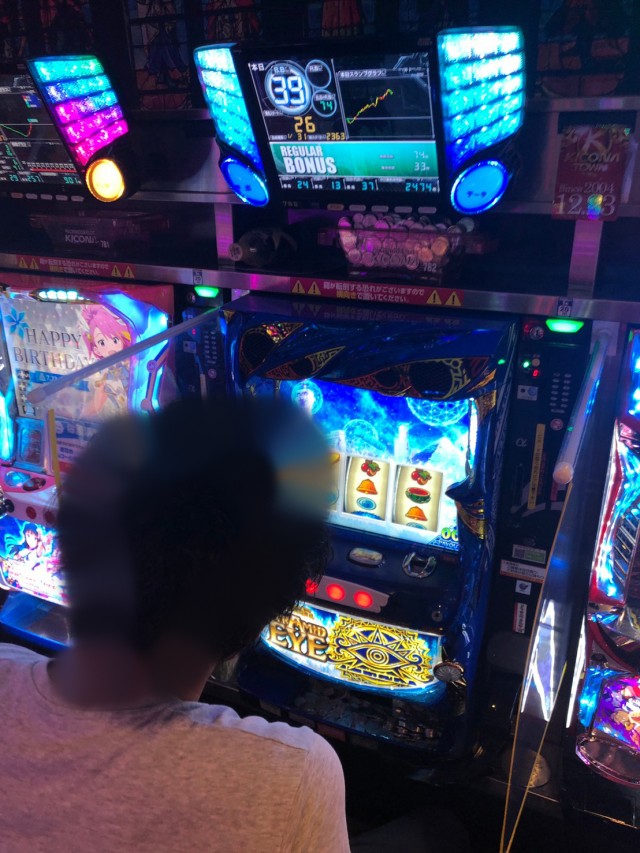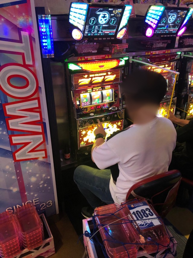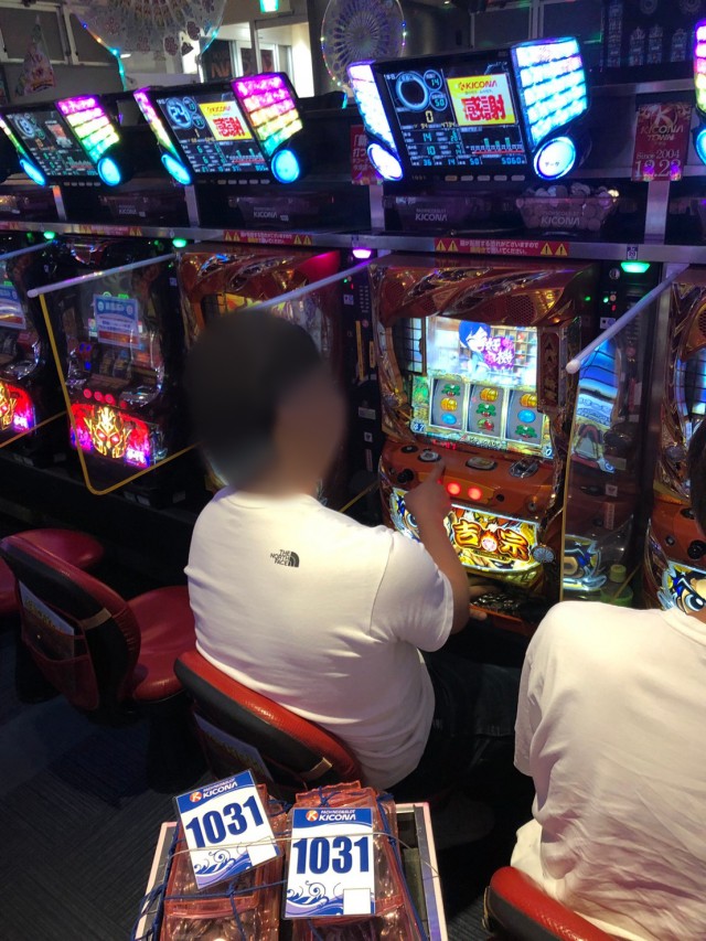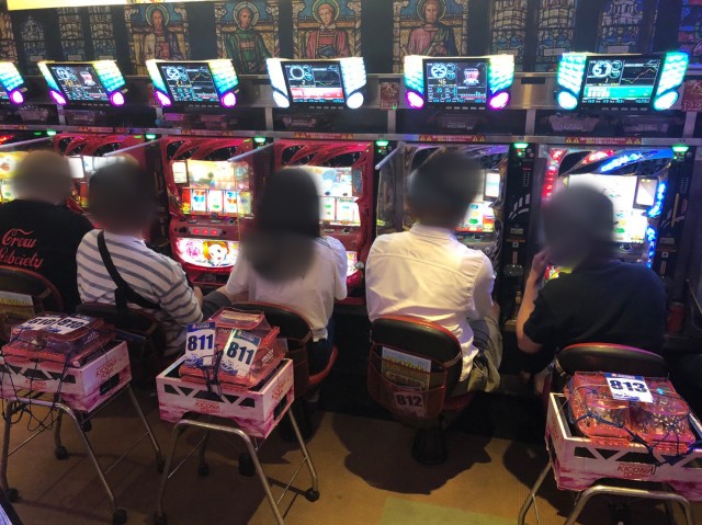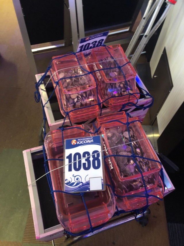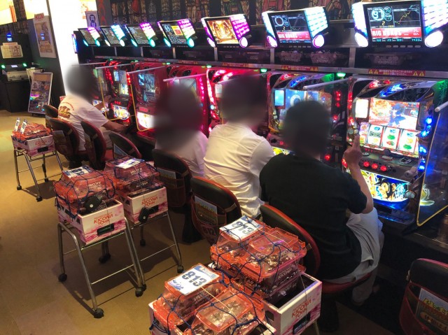 全台差枚数は少なめだったが、平均ゲーム数は高稼働の8,000G超、全台の3分の2がプラスで、ドル箱を複数使用している台も見られた。