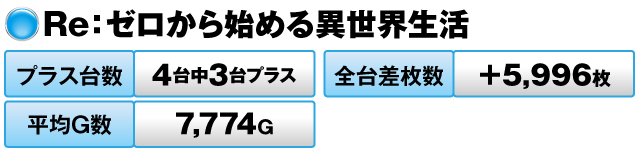 さらには全台差枚数プラス6,000枚クラスの2機種をピックアップ。『パチスロディスクアップ』『Re:ゼロから始める異世界生活』だ。