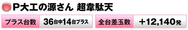 36台中14台がプラスで全台差玉数は+12,140発だった。