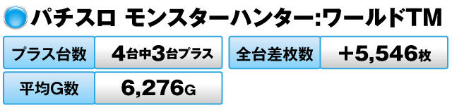 4台中3台がプラスで全台差枚数は+5,546枚だった。