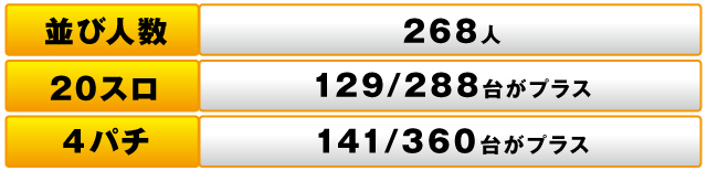 これらの機種の活躍もあって、パチスロ全体では288台中129台がプラス、トータルの差枚数は+55,584枚という結果だった。