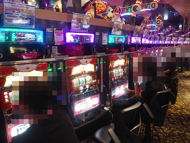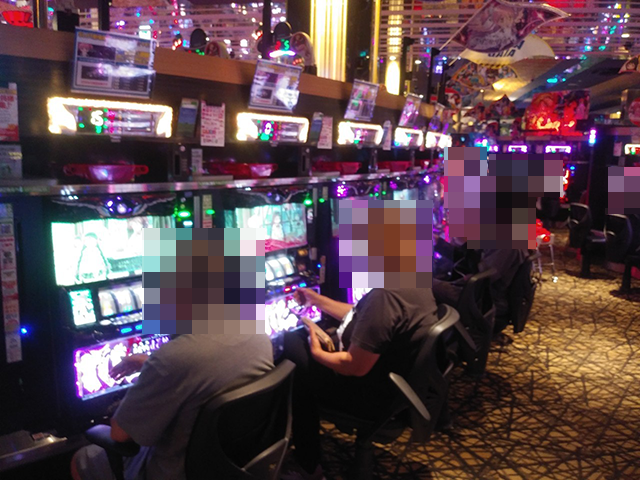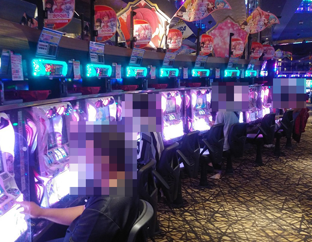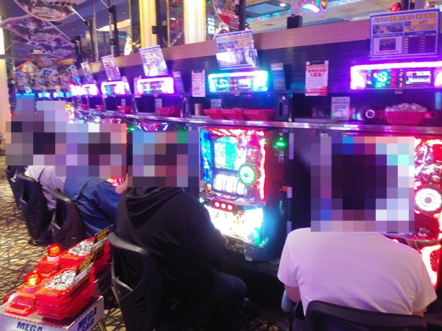 500台以上が設置されているパチスロをみると、プレイヤーたちが華麗なパフォーマンスを披露していた。