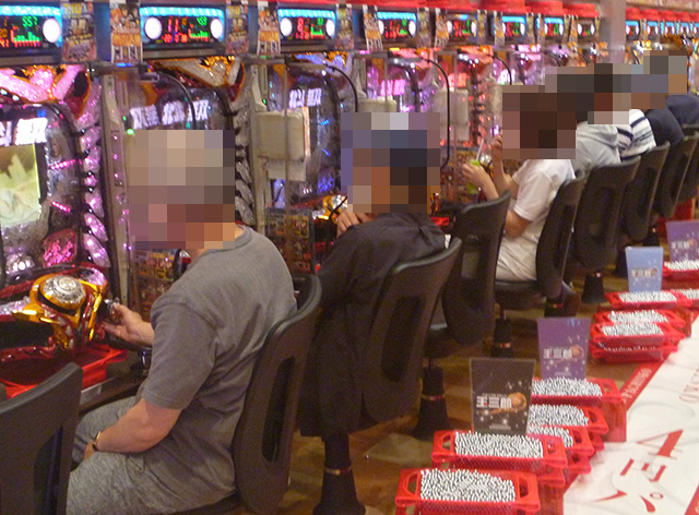 ほぼ満席の「ぱちんこCR真・北斗無双」にて、プレイヤーたちが美しい『乱舞』を披露!