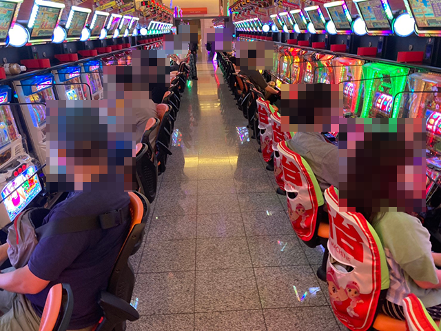 ホール内ではプレイヤーたちがうれしそうに遊技をおこなっており、にぎわいが感じられる状況。
