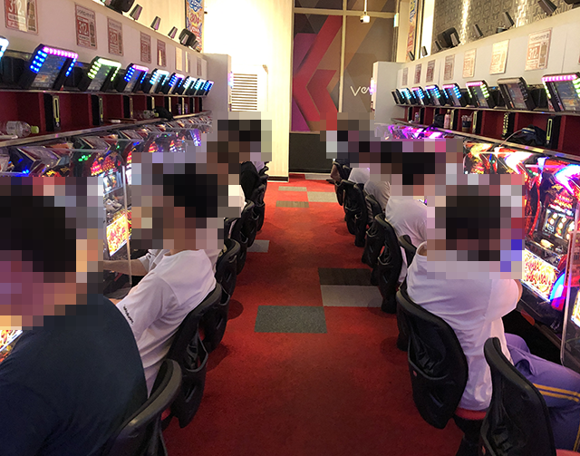「ハナビ」だけではなく、いたるところでうれしそうに遊技をおこなう姿があった「VEAM美咲町店」。