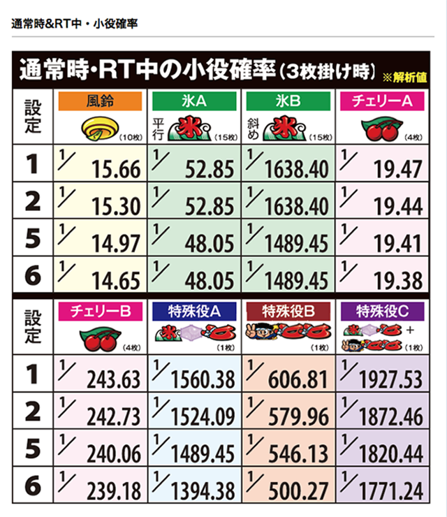 BIG中のハズレ確率に大きな設定差が設けられている。1回でも確認できれば高設定への期待が高まる。