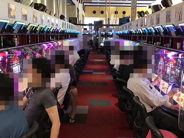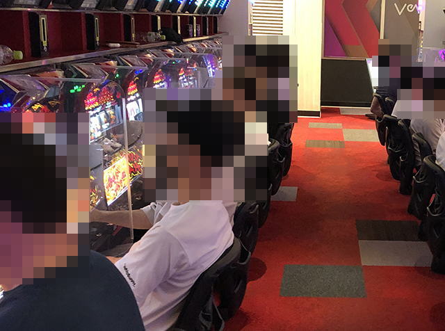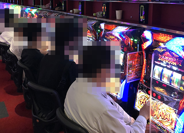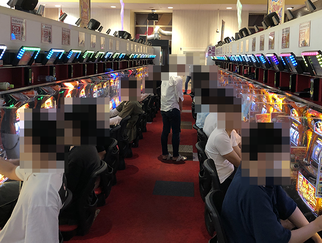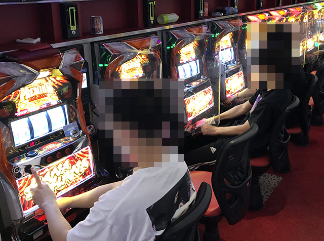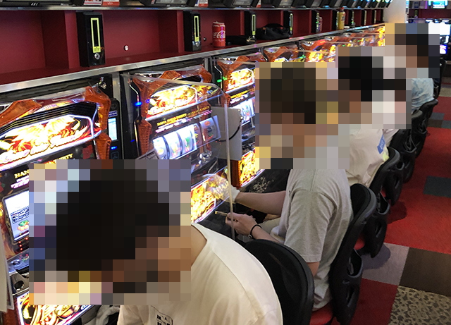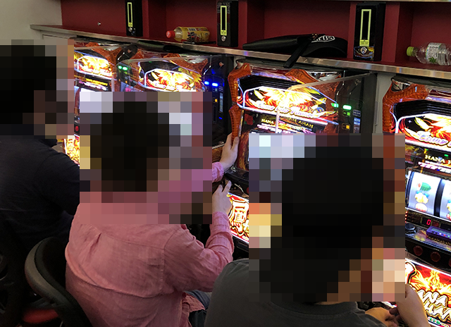 10台中6台が埋まっていた「プレミアムハナハナ-30」でも、プレイヤーたちは楽しそうな様子。
