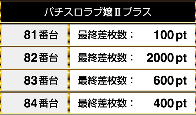 『パチスロラブ嬢Ⅱプラス』は設置されている4台すべてがプラスptを記録した。
