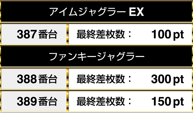 『アイムジャグラーEX』の1台は『ファンキージャグラー』の2台と並んでプラスptを記録!!