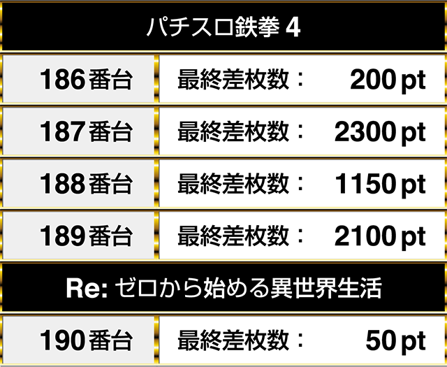 『パチスロ鉄拳4』は設置されている4台すべてがプラスptとなり、2台が2000ptオーバー!!