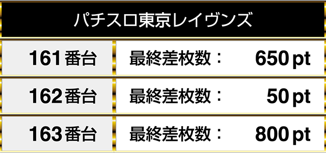 6台設置の『パチスロ東京レイヴンズ』は3台が連なってプラスptとなった。