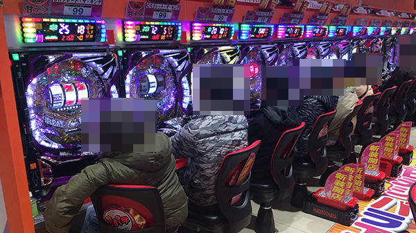 20円パチスロをみると、ジャグラーシリーズや「ニューパルサーデラックス」といったボーナスタイプにプレイヤーの姿が多数。シンプルな告知を堪能できているようなプレイヤーもあちこちでみられるなど、納得のできる遊技となっていたようだ。
