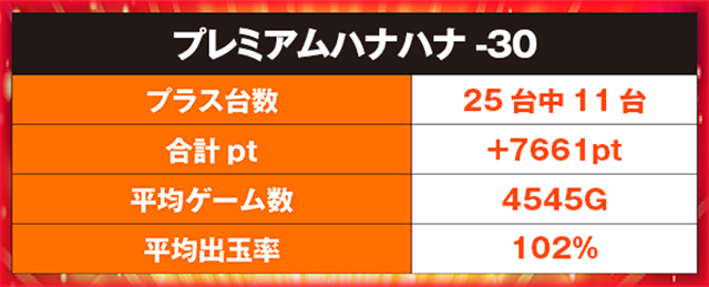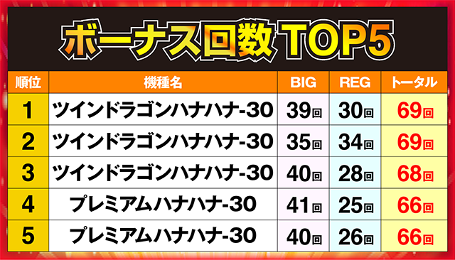 1位から3位までには「ツインドラゴンハナハナ-30」、4位と5位には「プレミアムハナハナ-30」がランクインした。