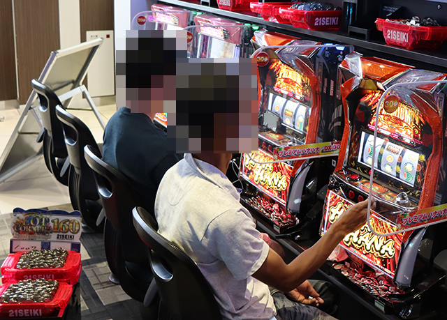 店内の状況をうかがうと、パチンコとパチスロの両方に笑顔をみせるプレイヤーの姿があった。