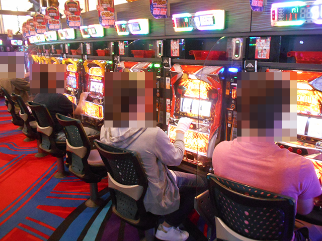 3台が稼働していた「グレートキングハナハナ-30」も目をひかれた場所のひとつ。確認時には全員が遊技を満喫している様子であり、うれしそうにレバーを叩いていたことも覚えている。