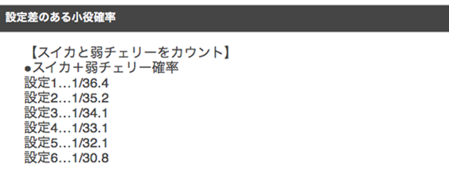 高設定ほど、弱チェリーとスイカの確率が高い。