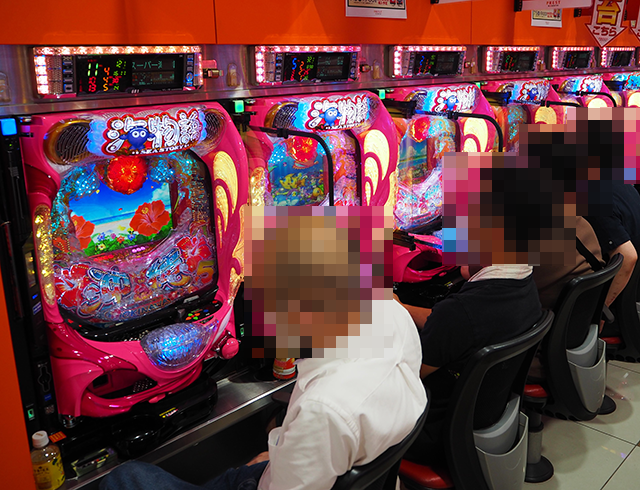 活気づいている店内で、ひときわ目立っていた「Pスーパー海物語 IN 沖縄5」。プレイヤーたちがイキイキとした様子で遊技をおこなっていたことも覚えている。