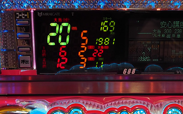 また、16時の時点で20回の大当りに当選している台があった。