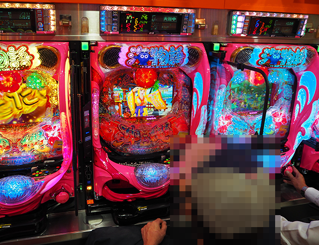 弐頭の龍の存在を探るべく入店すると、いくつもの場所に笑顔で遊技をおこなっている姿があった。