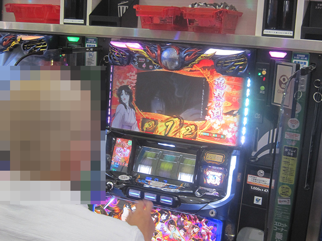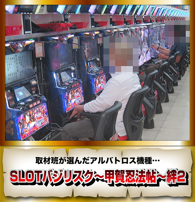 「SLOTバジリスク~甲賀忍法帖~絆2」をはじめ、あちこちでプレイヤーが活躍。機種のスペックに関係なく、充実した時間を過ごせるように思えた。
