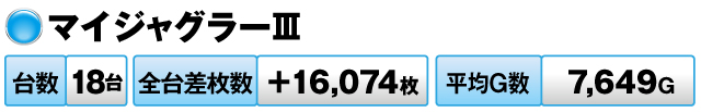 全14台で合わせて+16,074枚をマーク。平均G数も7,649Gと、稼働も上々だった。