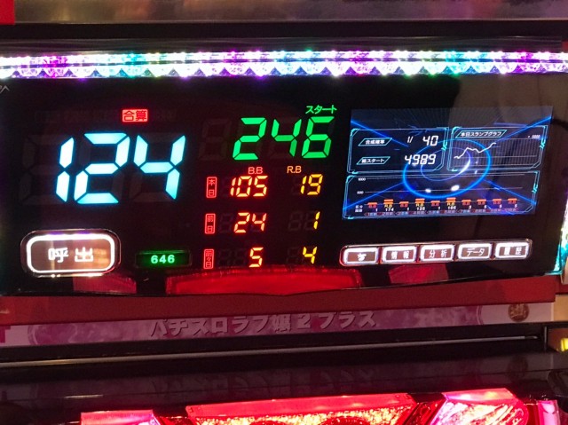 288台中115台がプラス、トータルの差枚数は+35,809枚と、前回を大きく上回る枚数を叩き出した。