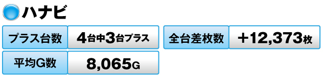 設置の75%がプラス台、全台差枚数は驚きの+12,000枚突破、平均G数は8,000Gを超え抜群だった。