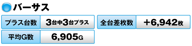 設置の全台がプラス、全台差枚数は驚きの+7,000枚弱、平均G数は7,000G弱となった。