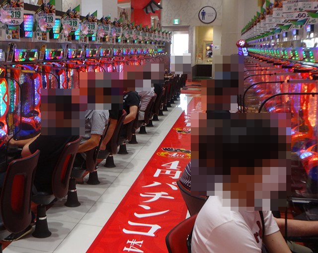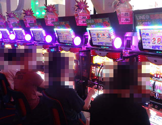 16時ごろには、大当り回数50回以上と40回以上の台が3台ずつあった。