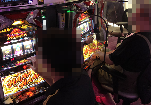 14台設置の「ツインドラゴンハナハナ-30」にて+5,000pt超の台を確認!