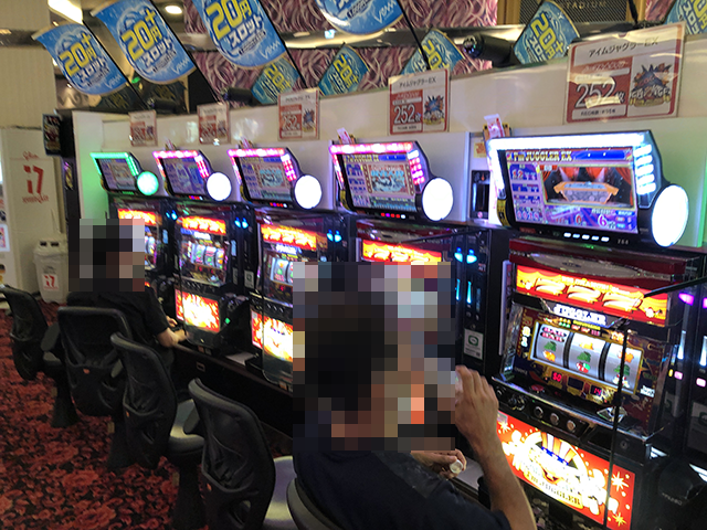 17時頃の「アイムジャグラーEX」は2台が稼働しており、機種の性能を引き出しているといった場面を目撃。