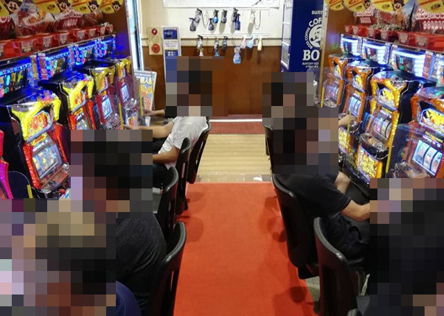 パチンコとパチスロの両方に、加熱式タバコを吸いながら遊技ができるコーナーが設けられているホールだ。
