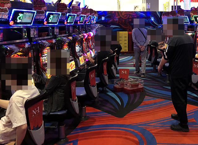 パチスロではハナハナシリーズとジャグラーシリーズが盛況となっており、どの機種にも遊技を満喫しているような姿があった。