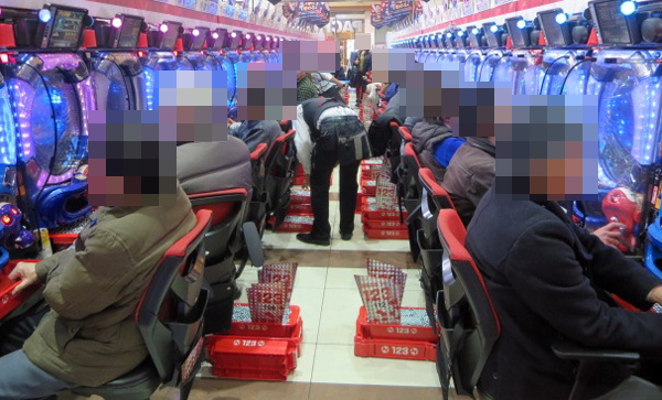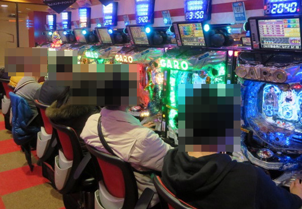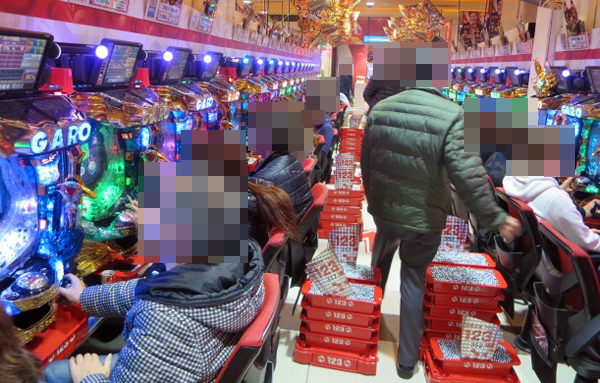 4円パチンコでは「CR牙狼 魔戒ノ花」と海物語シリーズが大盛況。シマ内ではたくさんのプレイヤーが笑顔を浮かべていた。