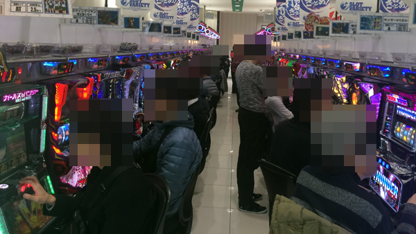 ホール内の総設置台数自体は多くはないが、パチンコ・パチスロともに好評で、たくさんのプレイヤーが集まっていた。