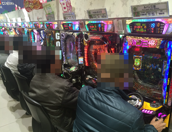4円パチンコでは遊パチコーナーの人気が高く、楽しそうな表情を浮かべるプレイヤーが多数。