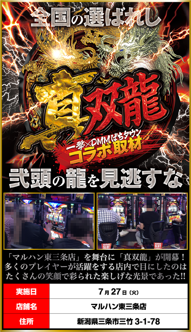 「マルハン東三条店」を舞台にして「真双龍」を敢行。
